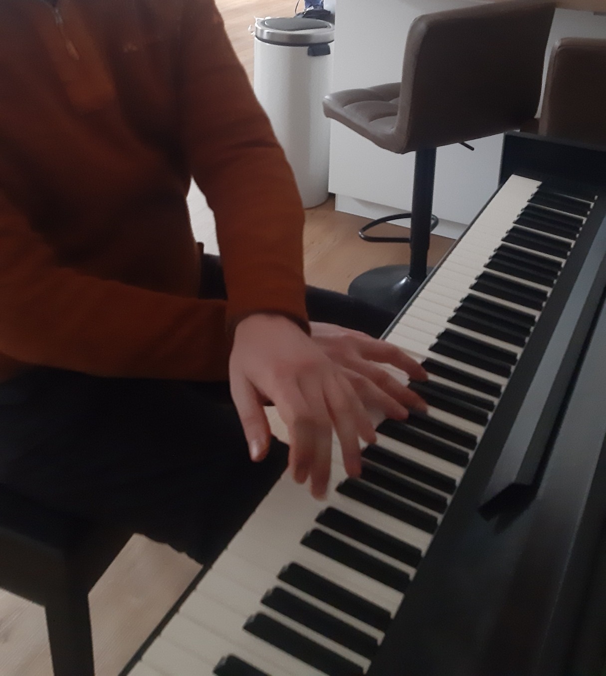 Stand Januar 2025: Derzeit befindet sich mein E-Piano leider noch nicht in meiner Wohnung, daher müssten wir die ersten Stunden bei dir zuhause abhalten. Ich hoffe, das ändert sich bald, falls du noch kein eigenes Instrument besitzt – bis dahin freue ich mich darauf, dich dort zu treffen, wo du bist, sowohl räumlich als auch musikalisch!
